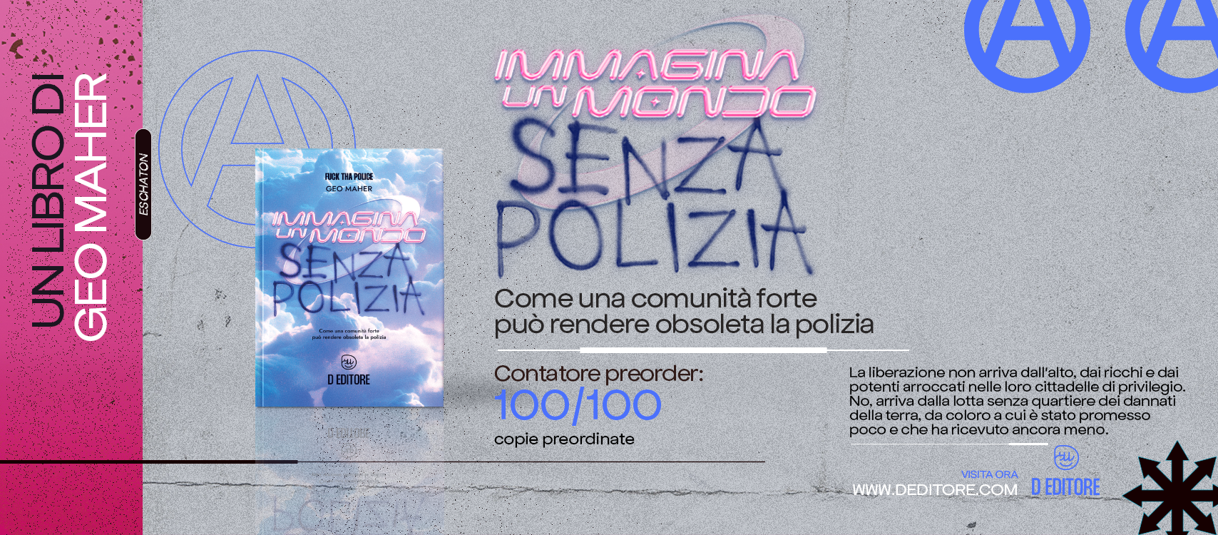 Come per ogni pubblicazione, anche per IMMAGINA UN MONDO SENZA POLIZIA ci sarà una prevendita a prezzo scontato SOLO PER LE PRIME 100 COPIE! Ma questa volta, le offerte saranno due: potrai recuperare infatti anche La società industriale e il suo futuro, il famigerato manifesto di UnaBomber, l’ultimo grande manifesto dell’anarchia!